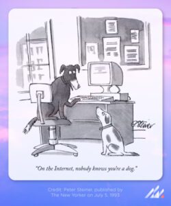 The process of creating and sharing your digital identity is built on technology that establishes a level of digital trust. Without it, you really can’t trust anything. Just like the old cartoon of two dogs in the office talking said: “On the internet, no one knows you’re a dog.” To address this, companies that create secure software embrace the implications of that cartoon while recognizing the complexity of the problem. They use a name for this situation that you will hear more and more about in the future: Zero Trust.