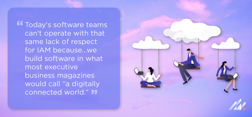 But, what’s the problem here? Simply, providing this level of IAM has implications on how you build software today and how you prepare for future changes. Making weak decisions about something as serious as IAM will expose your solution—and your customer’s identity and data—to people who could be hacking your system and harvesting your data. And you would never know it because, to you, they can look just like your normal customer/user. If bad actors can get those digital credentials, they can break that chain of trust, impersonate a valid user and begin to compromise, corrupt and collect data from your internal teams, your partners and your customers.
