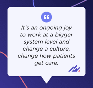 Dr. Keen: Absolutely. It’s an ongoing joy to work at a bigger system level and change the culture, change how patients get care. One of the things I got to oversee was during an extreme COVID-19 surge. We created a remote telehealth process using technological hardware and software, monitoring patients successfully at home without overwhelming the hospital capacity.